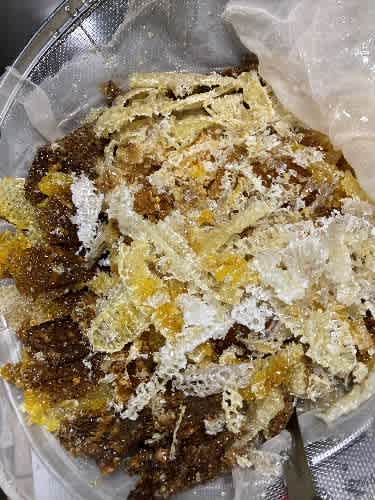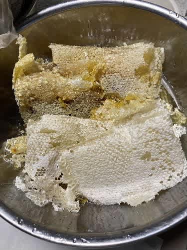 巣蜜についている蜂蜜は、ドライヤーで熱を加えて