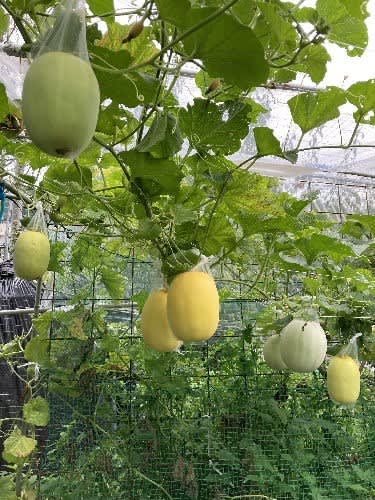 初物のコウセキウリとプリンスメロンを収穫をぶじ収穫。