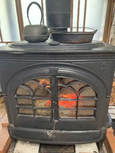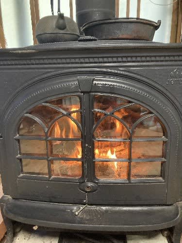 煙突のススを掃除してから、薪ストーブに火を入れました。
