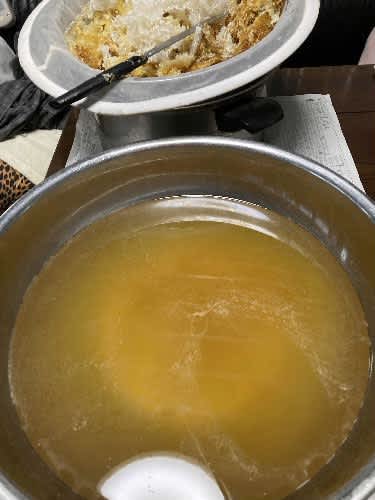 巣蜜を溶かしながら、蜜蝋と分離しました。