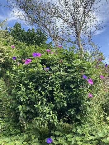 丈夫なツルで花木に絡みつくので、