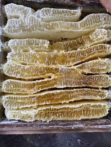 空になった箱は、日光にさらして着いた蜜蝋を溶かします。