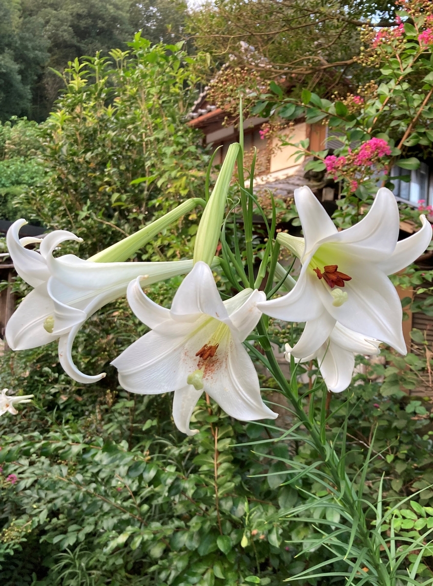 目が疲れたので庭を歩いたら、高砂百合が咲いていたので、