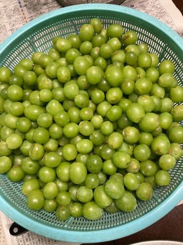 西の畑の果樹園に実っているシャインマスカット。 大きな粒にするために、傷がある実や小さい実を摘果しました。 摘果した時期が遅かったので、けっこう大粒の実もあります。 捨てるのはもったいないので、ジャムを作ることにしました。 うちのシャインはた…