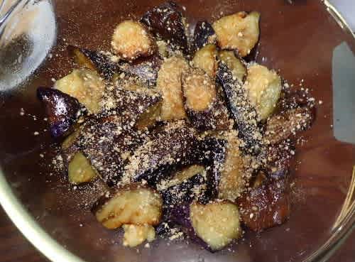 出汁に漬けて「ナスの揚げ浸し」を作りました。