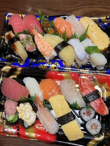夕ご飯は、お得な「感謝デーにぎり寿司」と「火水限定にぎり」。