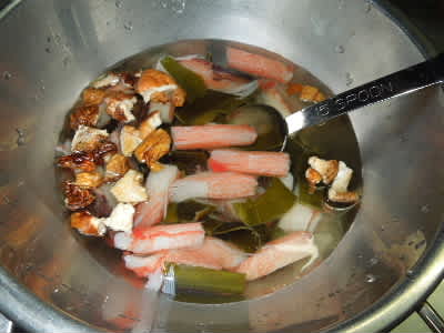 昆布とシイタケと冷凍ズワイガニと干しホタルイカ。