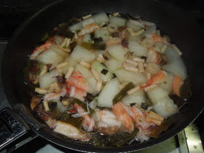 冬瓜と合わせて15分ほどとろ火で煮ます。