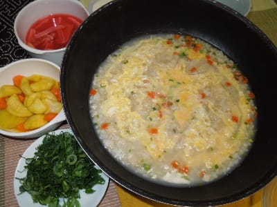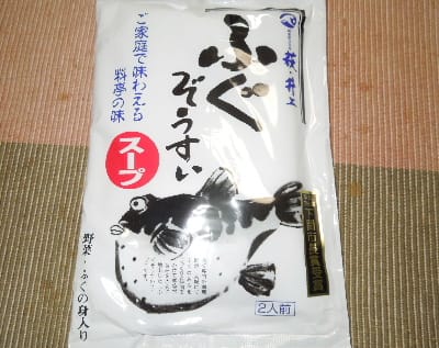 お昼ごはんは、山口のお土産で買ってきた「ふぐぞうすい」。