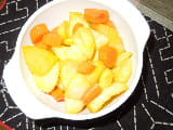 くちなし実を薄切りにして入れだら、鮮やかな黄色になりました。