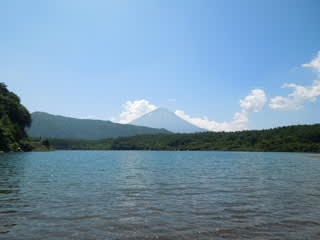 精進湖他手合浜から見える富士は、大きな富士山の手前に小さな大室山が重なって見えることから「子抱き富士」と呼ばれています。