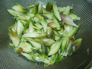 茗荷は、きれいに洗って50度のお湯で50度洗いして、「茗荷の紫蘇漬け」を作ります。