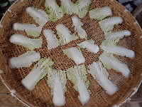 畑にたくさん残っている白菜は、50℃洗いしてから、