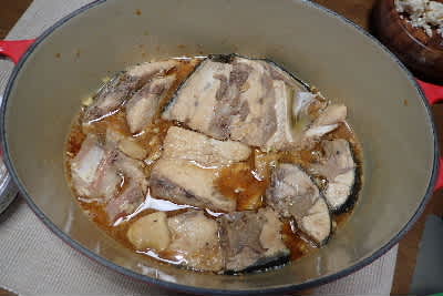 おでんの出汁は、昆布と前日の天然ブリのあら煮の煮汁を漉したもの。