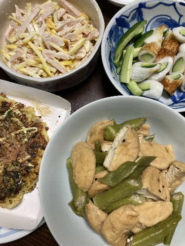 スギ薬局ではがんもも買ってきたので、夜はオクラとの炊き合わせ。
