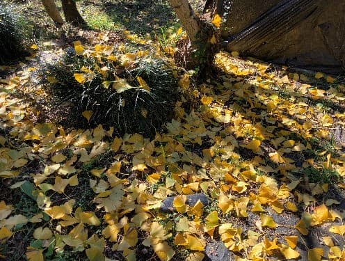 落葉も始まっていて、木の下には黄色のじゅうたんが広がっています。