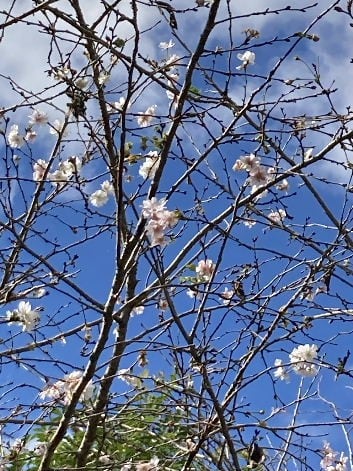 十月桜(ジュウガツザクラ)は、エドヒガン系で小彼岸桜(コヒガンザクラ)の雑種とされています。