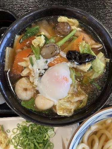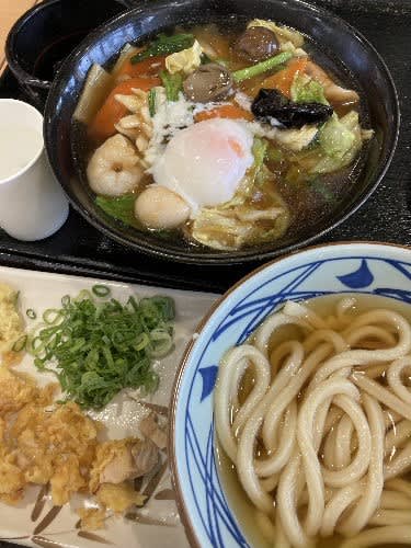 わたしは丸亀製麺のかけうどん、パートナーは五目あんかけソバ。