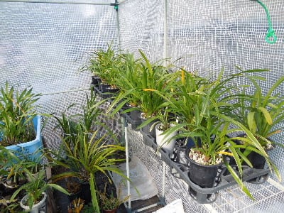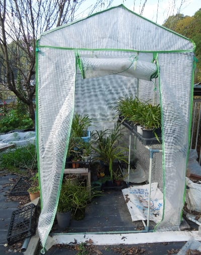 温度が下がりそうな夜にはパオパオをかけていたキンリョウヘンたち。