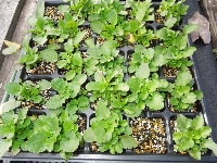 個々の前には、毎日、ハジル苗のトレイを出しています。