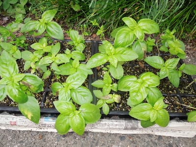 バジルは寒さに弱いので、夜には玄関の中に入れます。