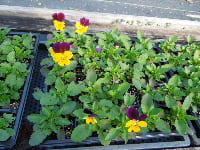 玄関前の軒下の目立つところに、「虹色スミレ」を20株ほど。